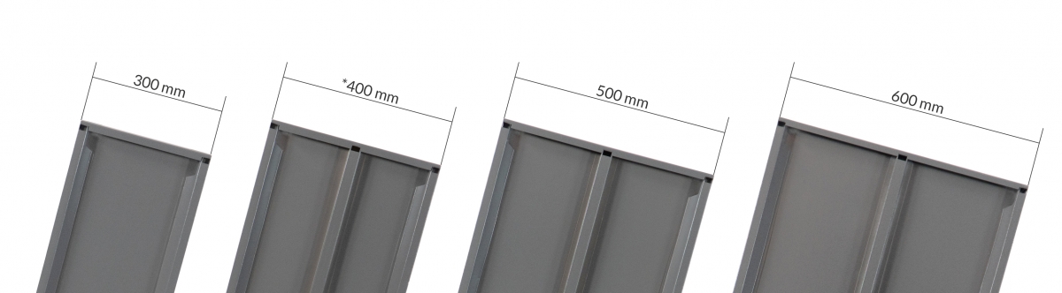 *Todas as bandejas de 400 mm de profundidade incluem uma travessa de reforço, exceto a de 300 mm de largura.