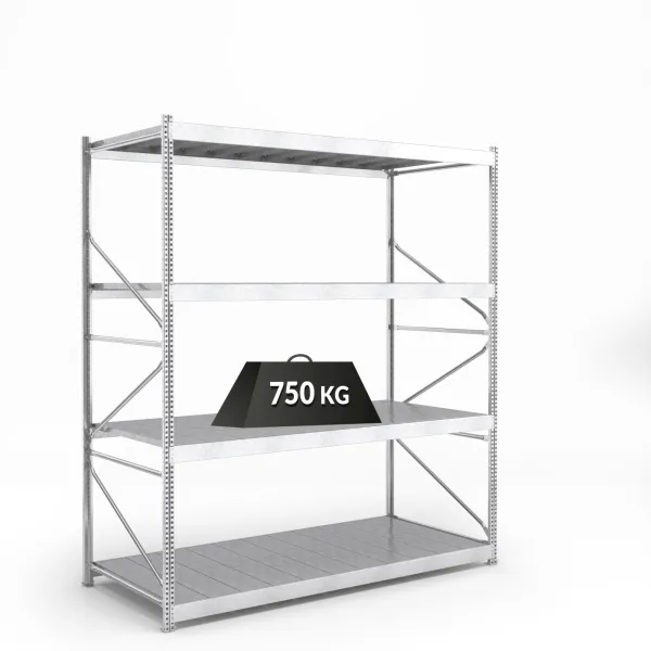 Com até 750 kg de peso por prateleira, a estante Picking Galvanizada 600 torna-se uma das soluções de armazenamento mais resistentes. Pertence ao grupo de estantes de carga pesada, visto que é capaz de suportar de 540 a 750 kg, consoante as medidas.